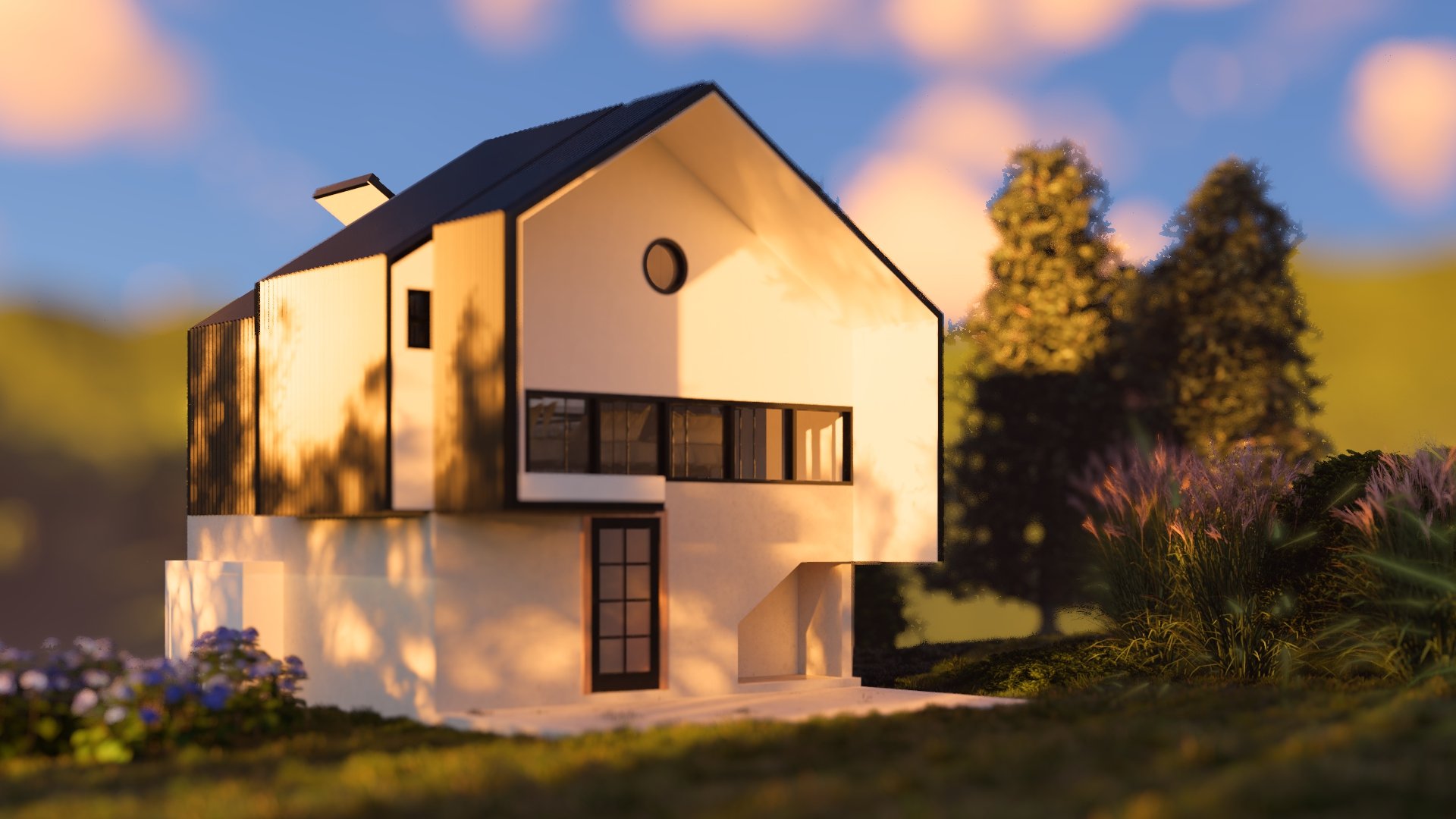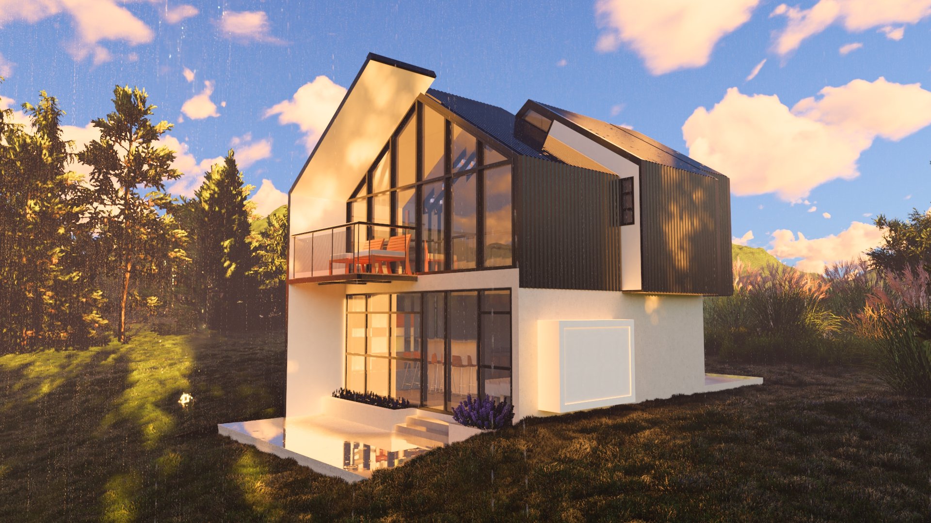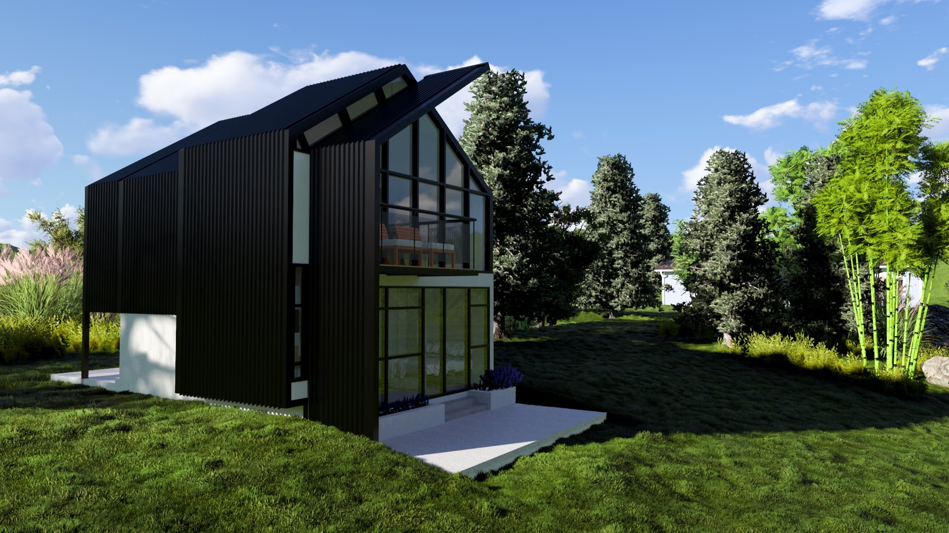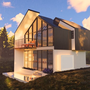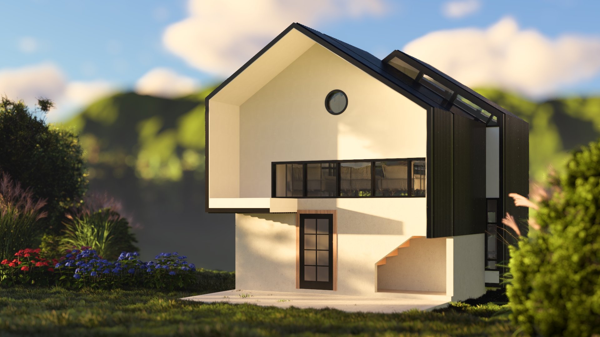 Inspired by the Nordic A-frame typology, the project reinterprets the form to welcome light. Clad in black and pristine white inside, the cabin balances shelter and openness.